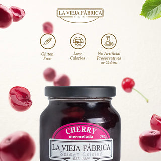 La Vieja Fábrica Cherry Fruit Spread/Mermelada Jam (280 G) | 100% Pure | Gluten-Free | Made in Spain