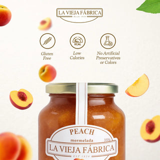 La Vieja Fábrica Peach Mermelada 350g | Authentic Spanish Peach Jam | Gluten-Free | Made with 100% Real Peaches | From a 190-Year-Old Recipe