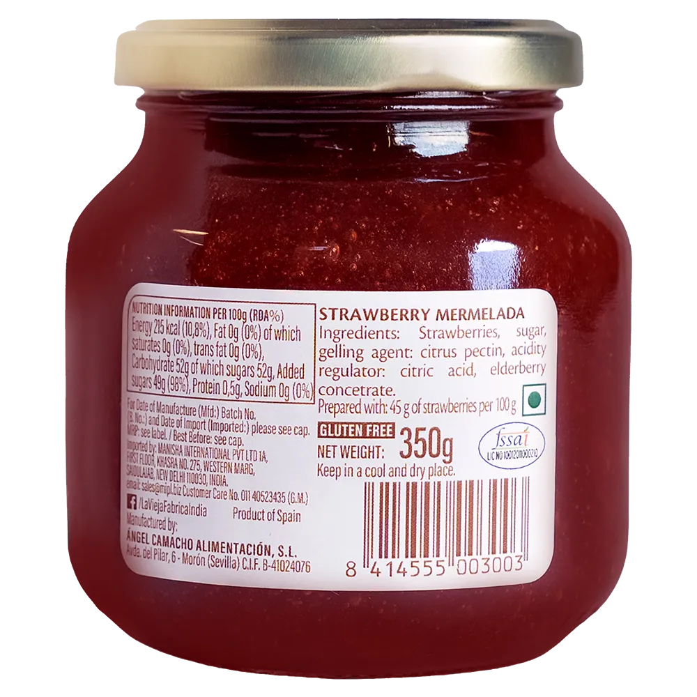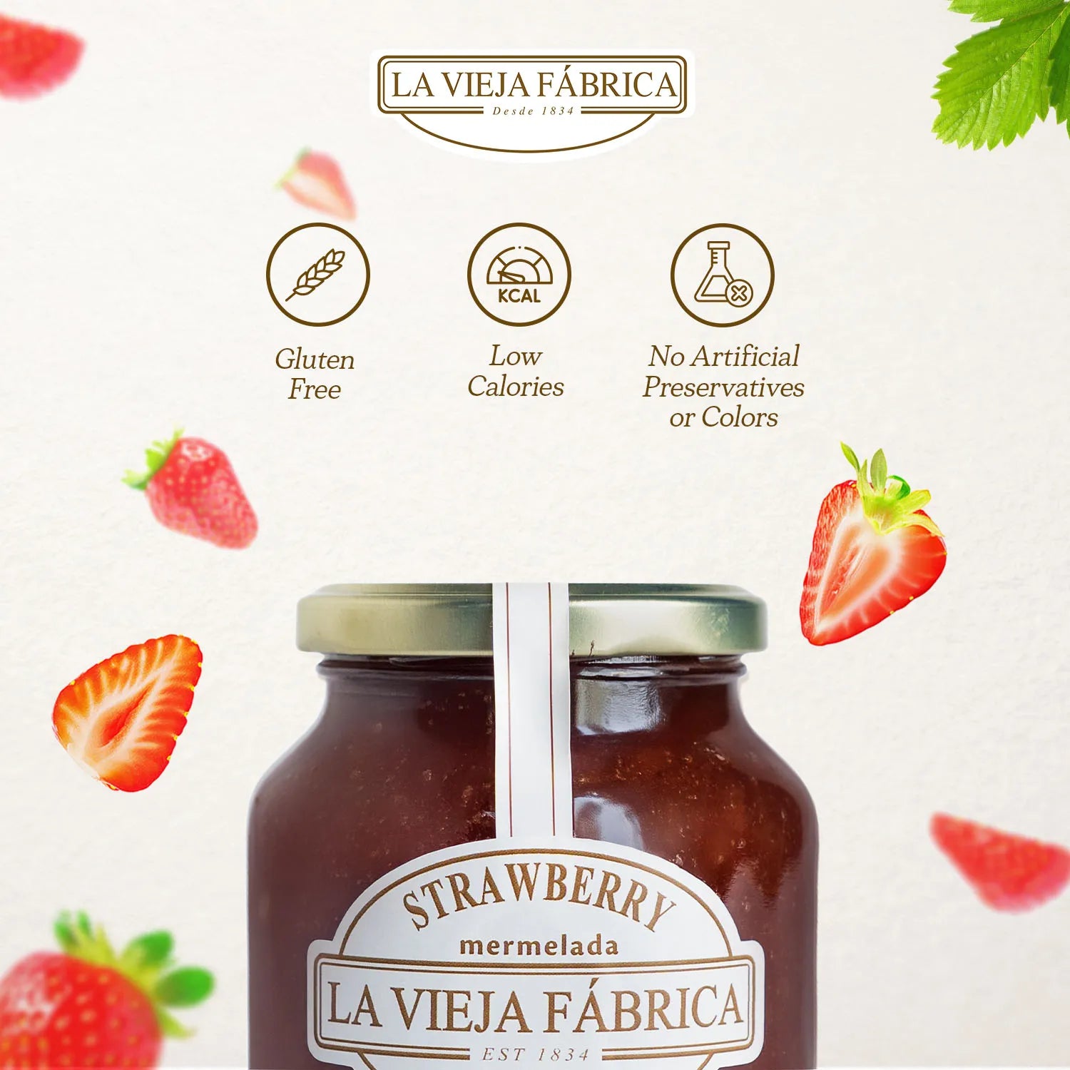 La Vieja Fábrica Strawberry Mermelada/ Fruit Spread 350g | Premium Gluten-Free Spanish Strawberry Jam | Made with 100% Real Fruit | 190-Year-Old Recipe